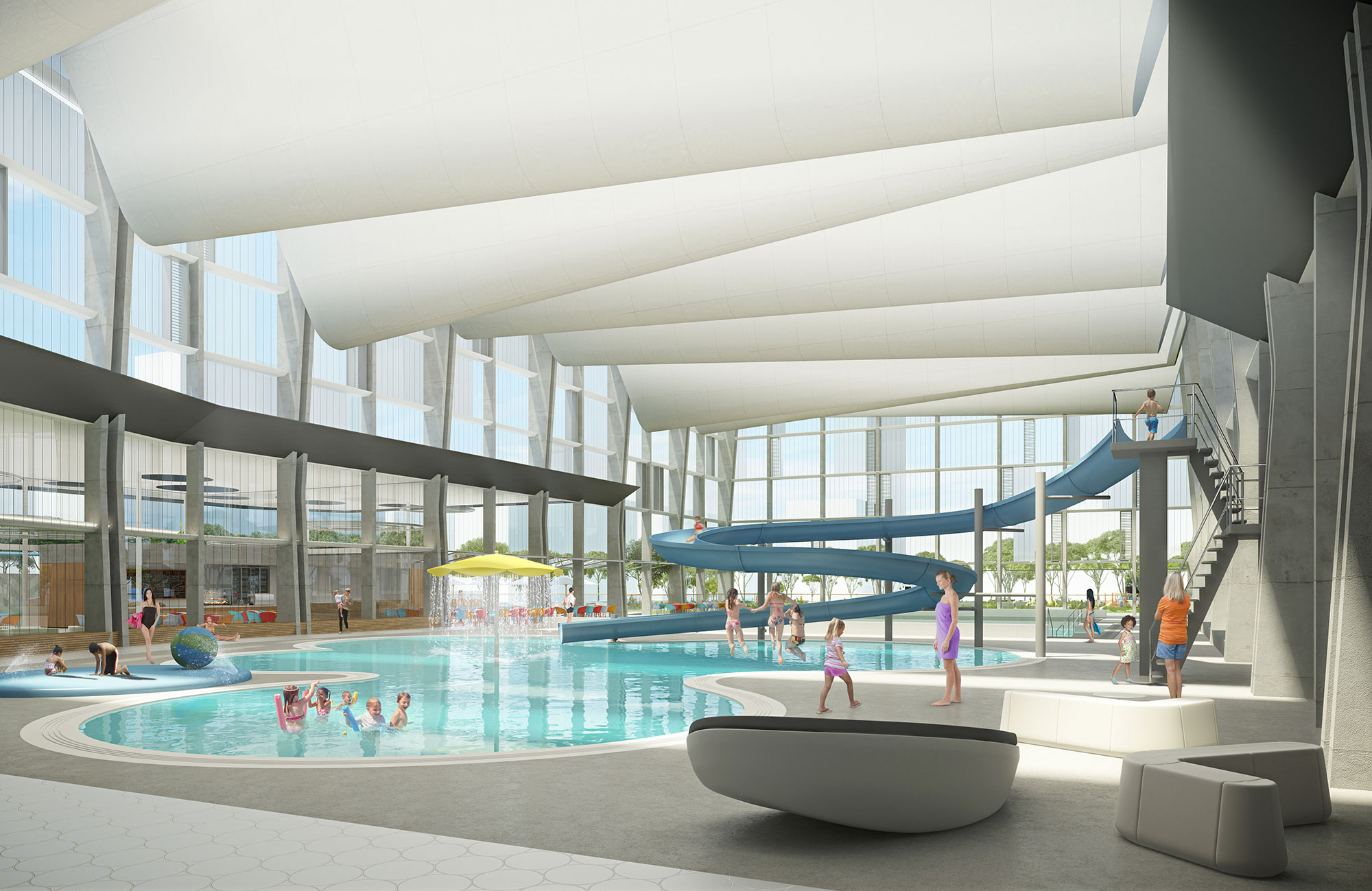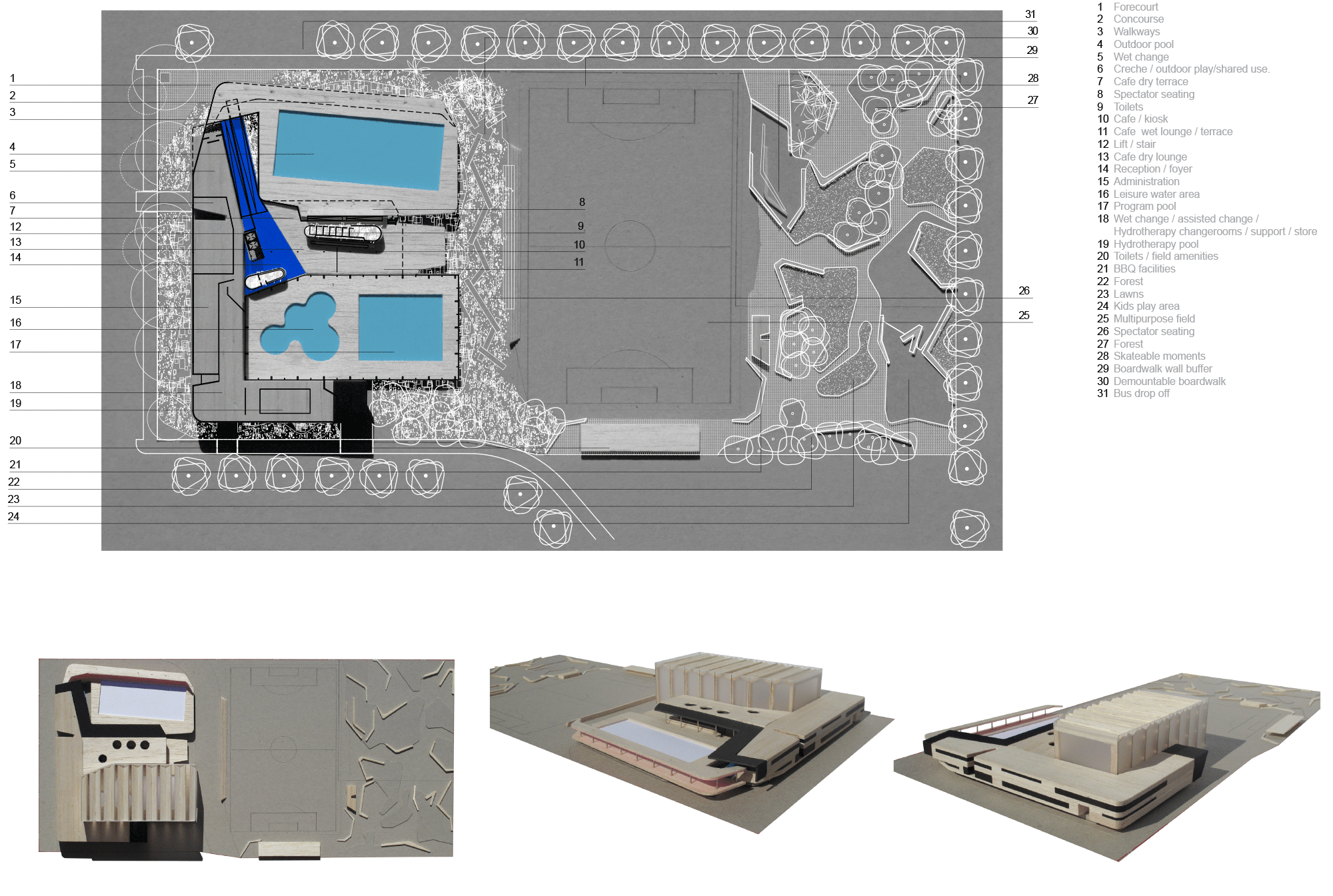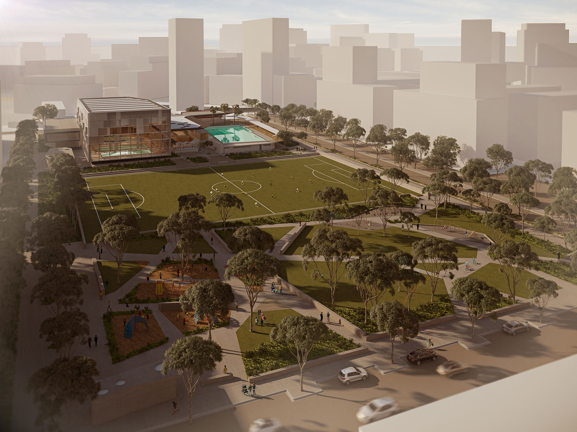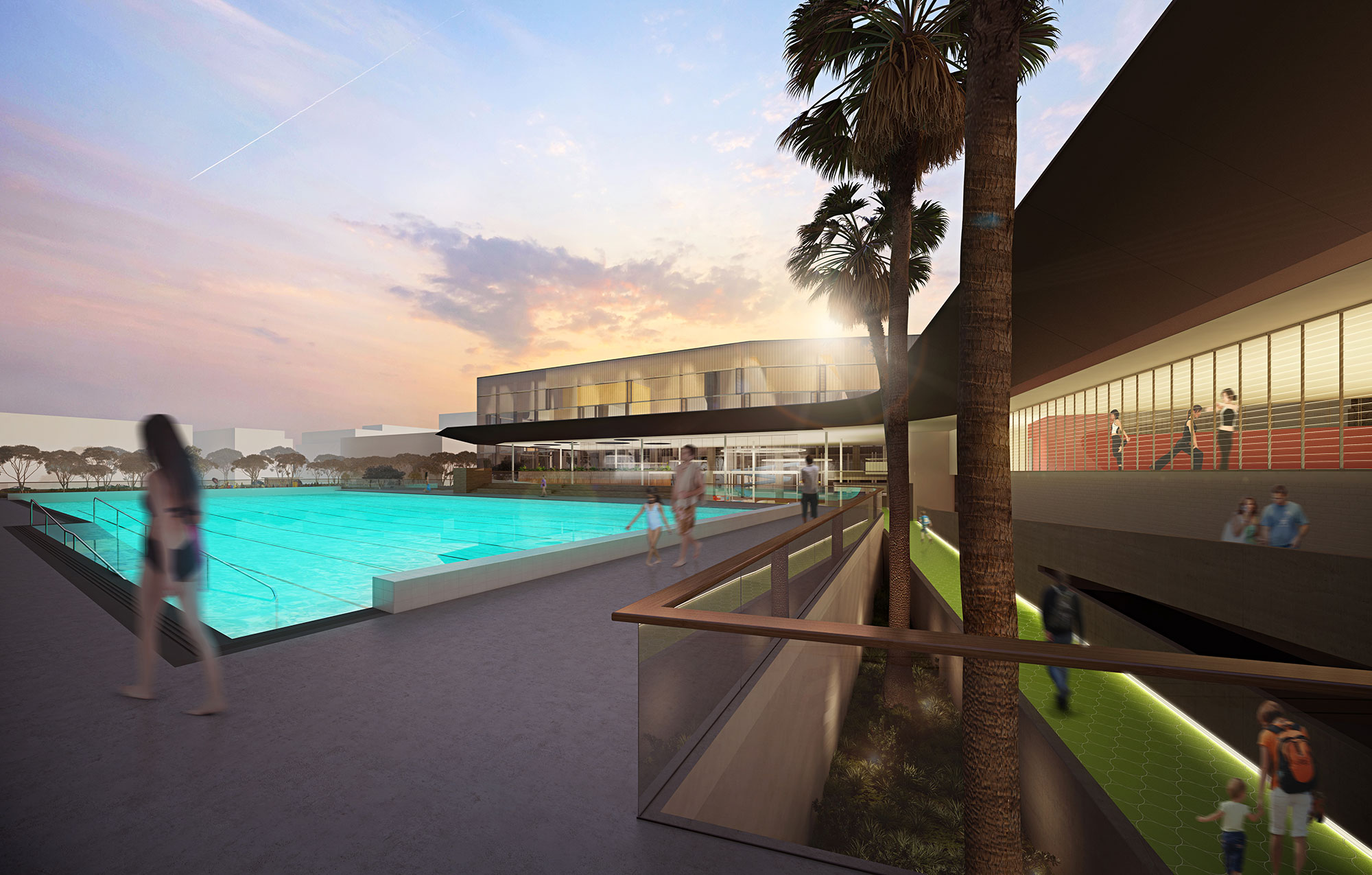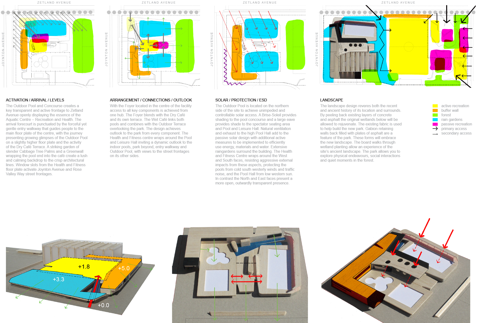The City of Sydney invited architects (together with a landscape architect) to participate in a design competition on a site at Green Square, Zetland to provide a community recreation facility that would include a park (with recreation sporting field and associated landscaping) and an aquatic leisure centre. This was to be a place for active recreation for the community, both its residents and workers – a place to meet, exercise, socialise, play and recreate.