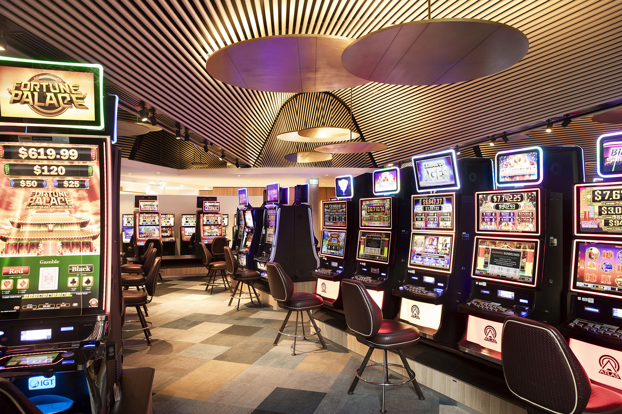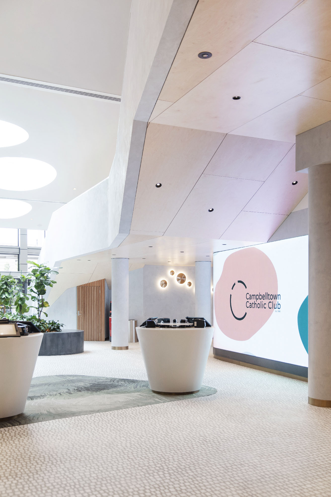 The gaming area now features enhanced lighting and an undulating decorative ceiling which amplifies the drama of this double-height space. This new link creates a loop through the venue showcasing all the club’s various offers and venues. This is a great improvement on the previously linear foyer experience which terminated with the foodcourt only.