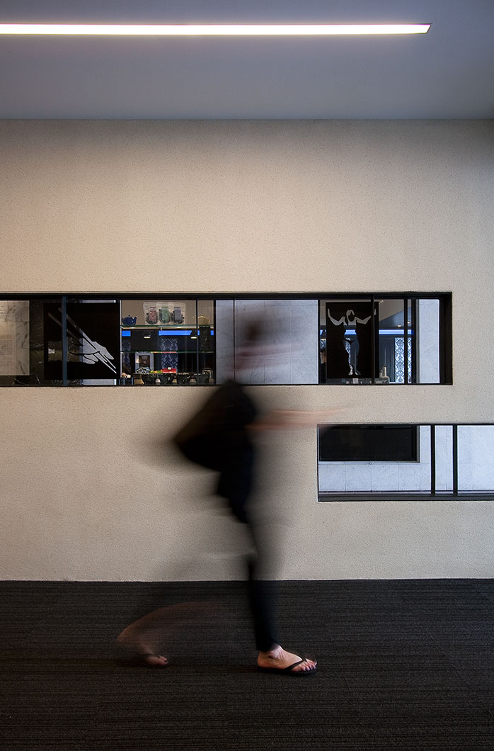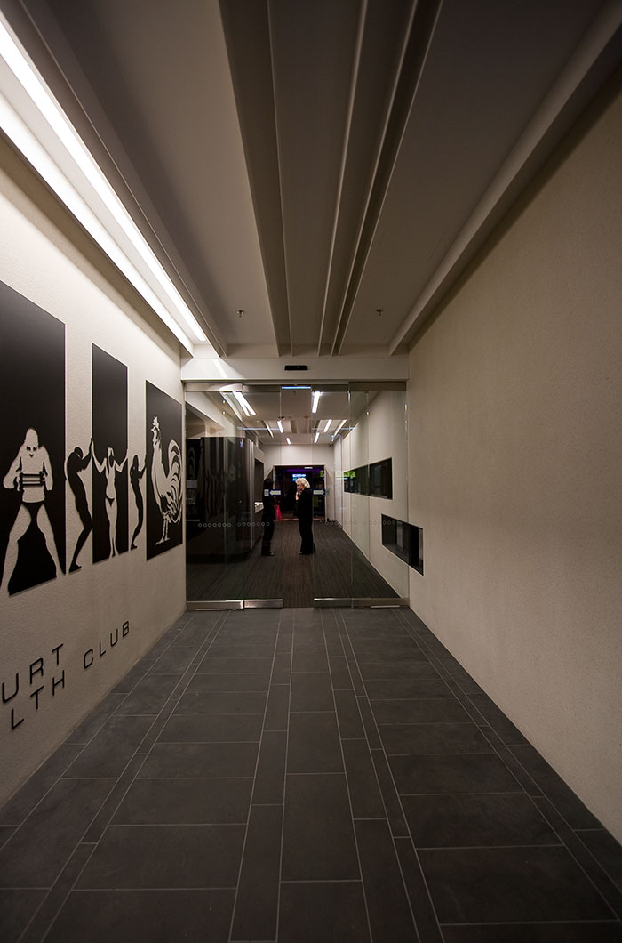 The existing Easts Bronte Rd entry was a non-descript door at the end of a corridor. Cullinan Ivanov Partnership were commissioned to create a totally new secondary entry for the Easts Group’s Bondi flagship Club.