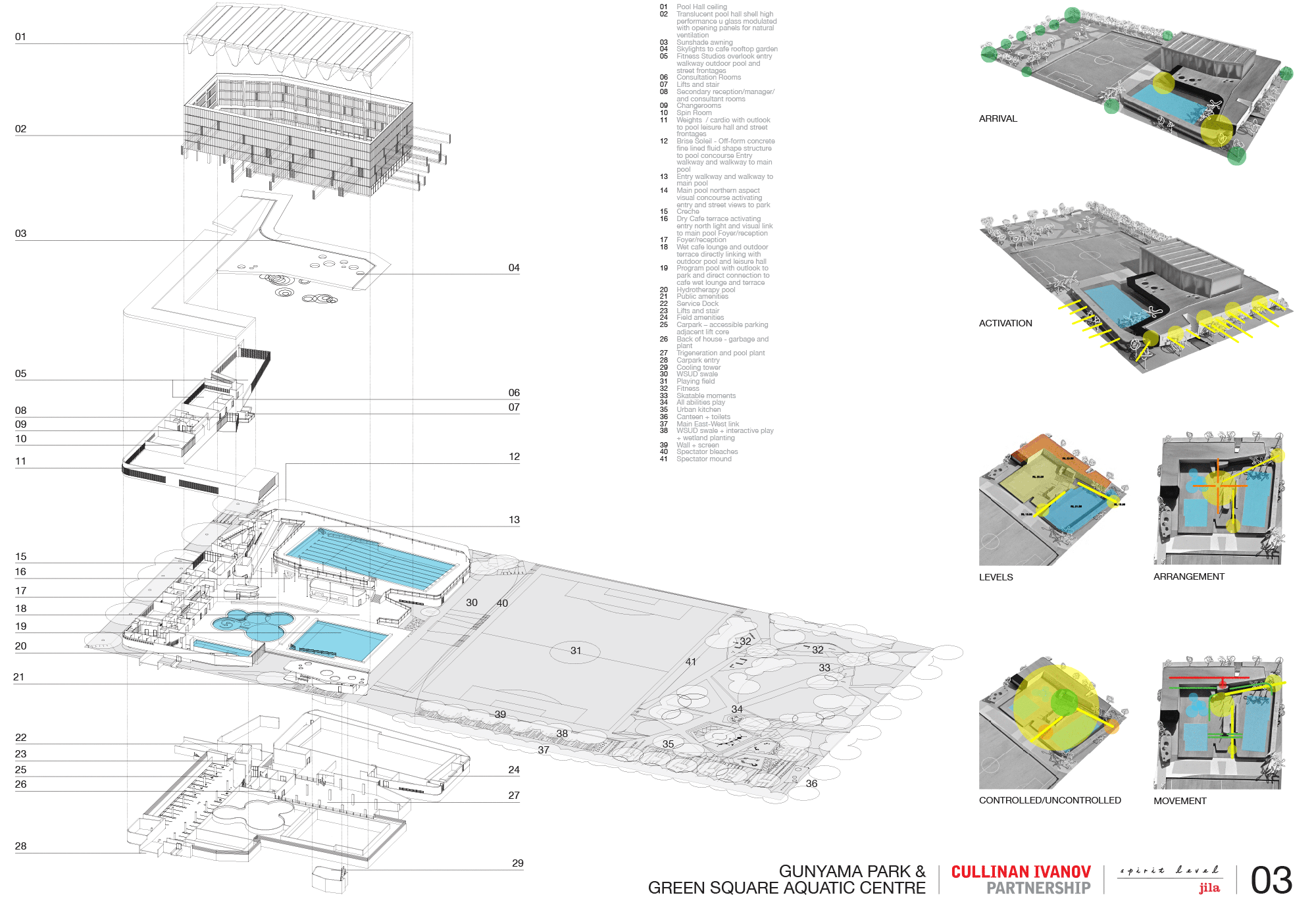 Cullinan Ivanov Partnership were one of five shortlisted practices in the international competition for the design and documentation of the Gunyama Park + Aquatic Centre in Green Square. We were then invited to a second stage of the competition, which required a very detailed design and cost documentation.