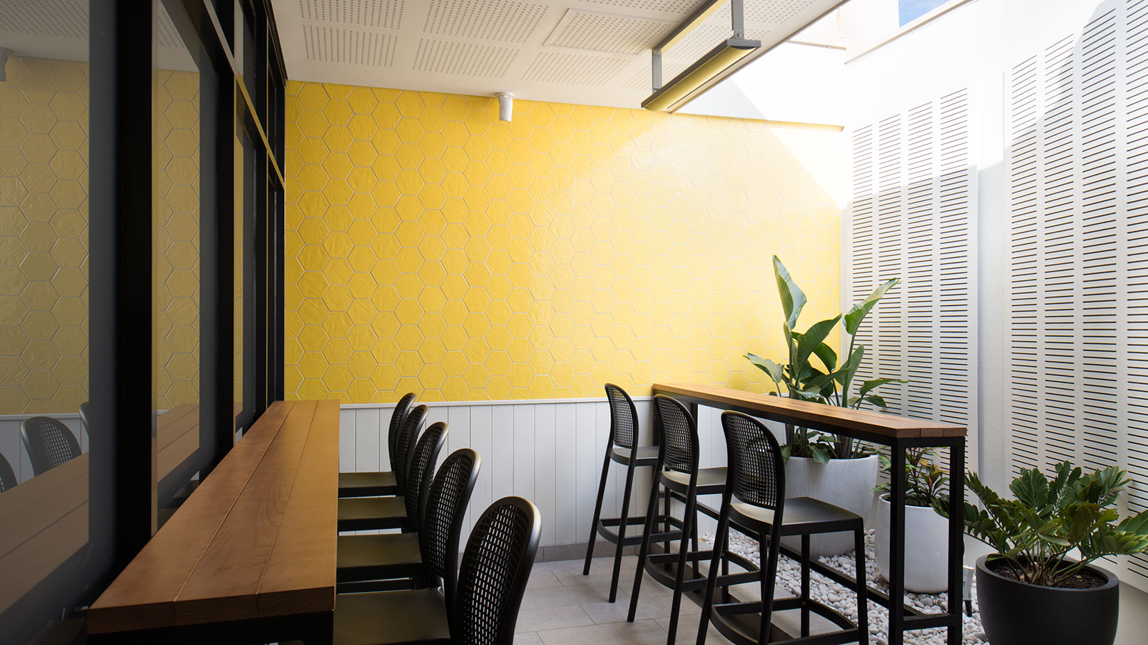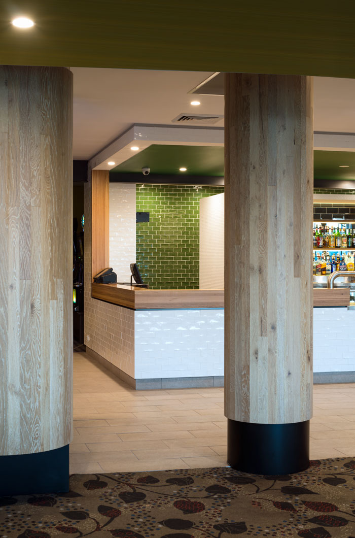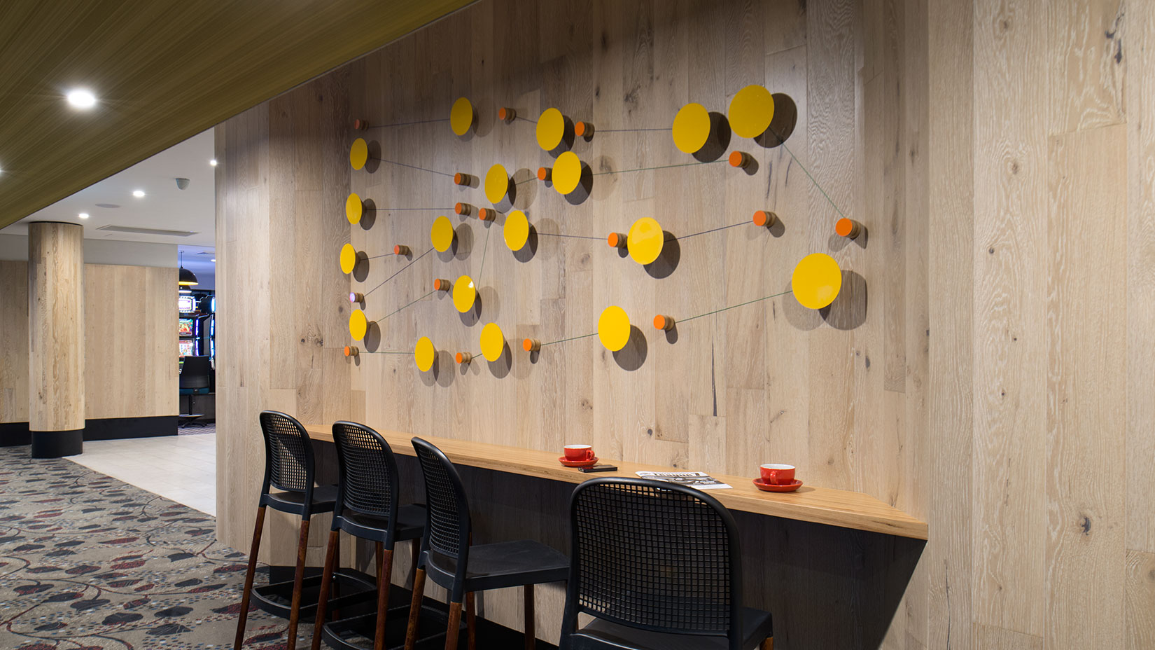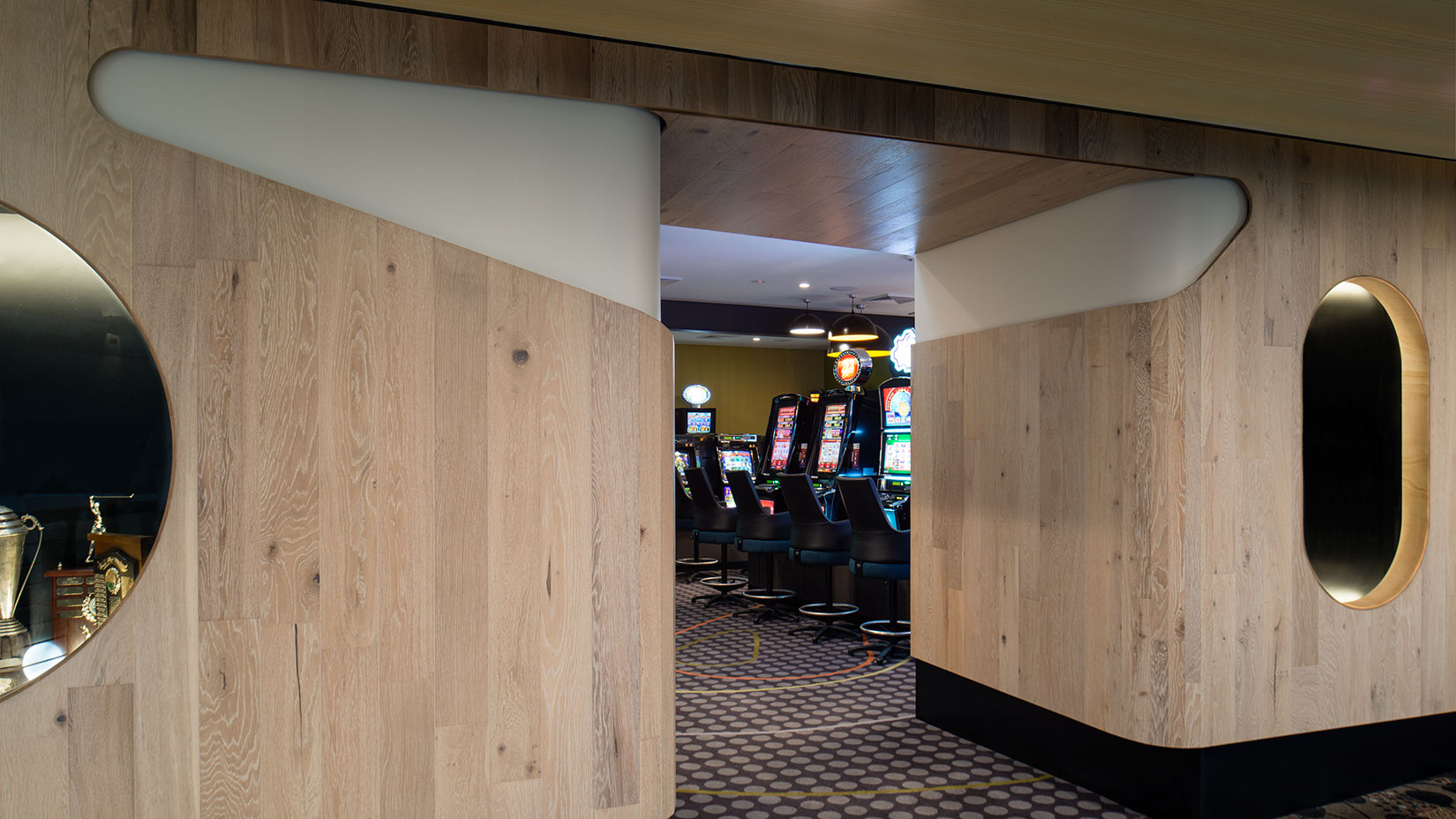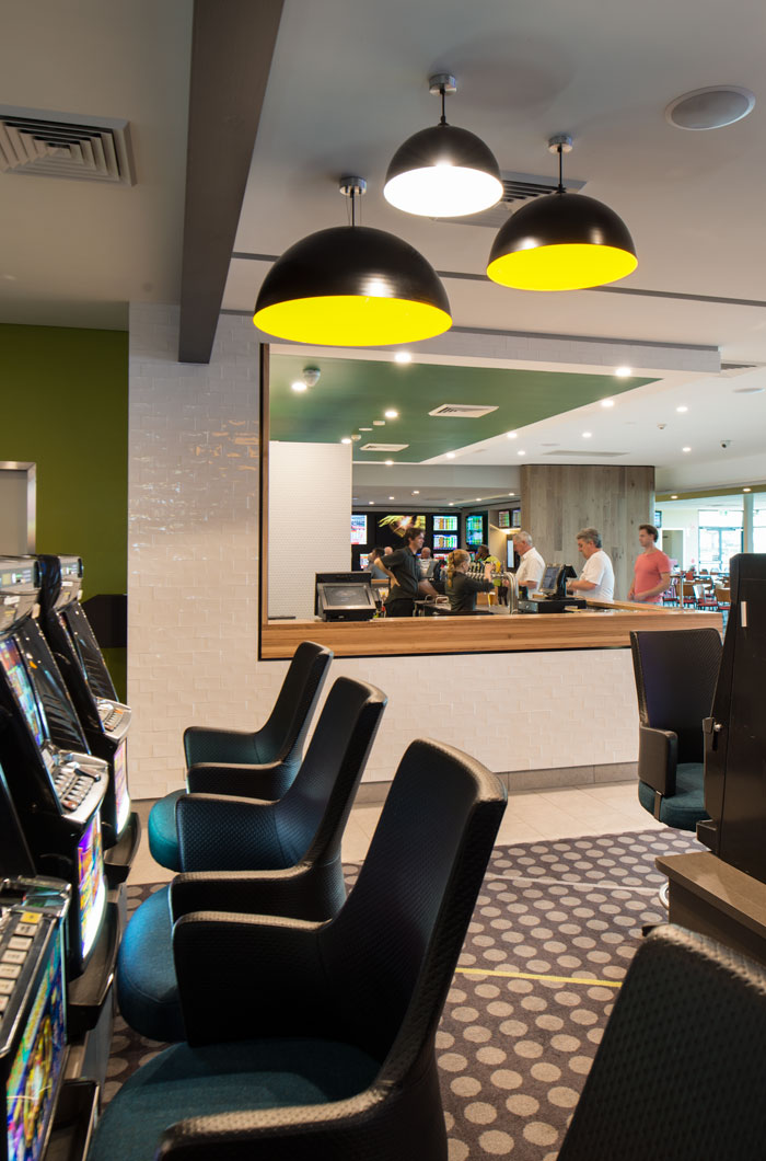 The new areas have a mix of natural high-quality materials such as oak lined walls and display cabinets for the Club’s historic golfing memorabilia. A new bar with the warmth of a natural blackbutt timber bar top and crisp white tiles to the bar faces creates the focus of the renewed area of the Club. The new Sports terrace was created to give patrons an outdoor space for smoking without impacting the Gaming area. The terrace had the added benefit of providing much needed natural cross ventilation to the Club floor.