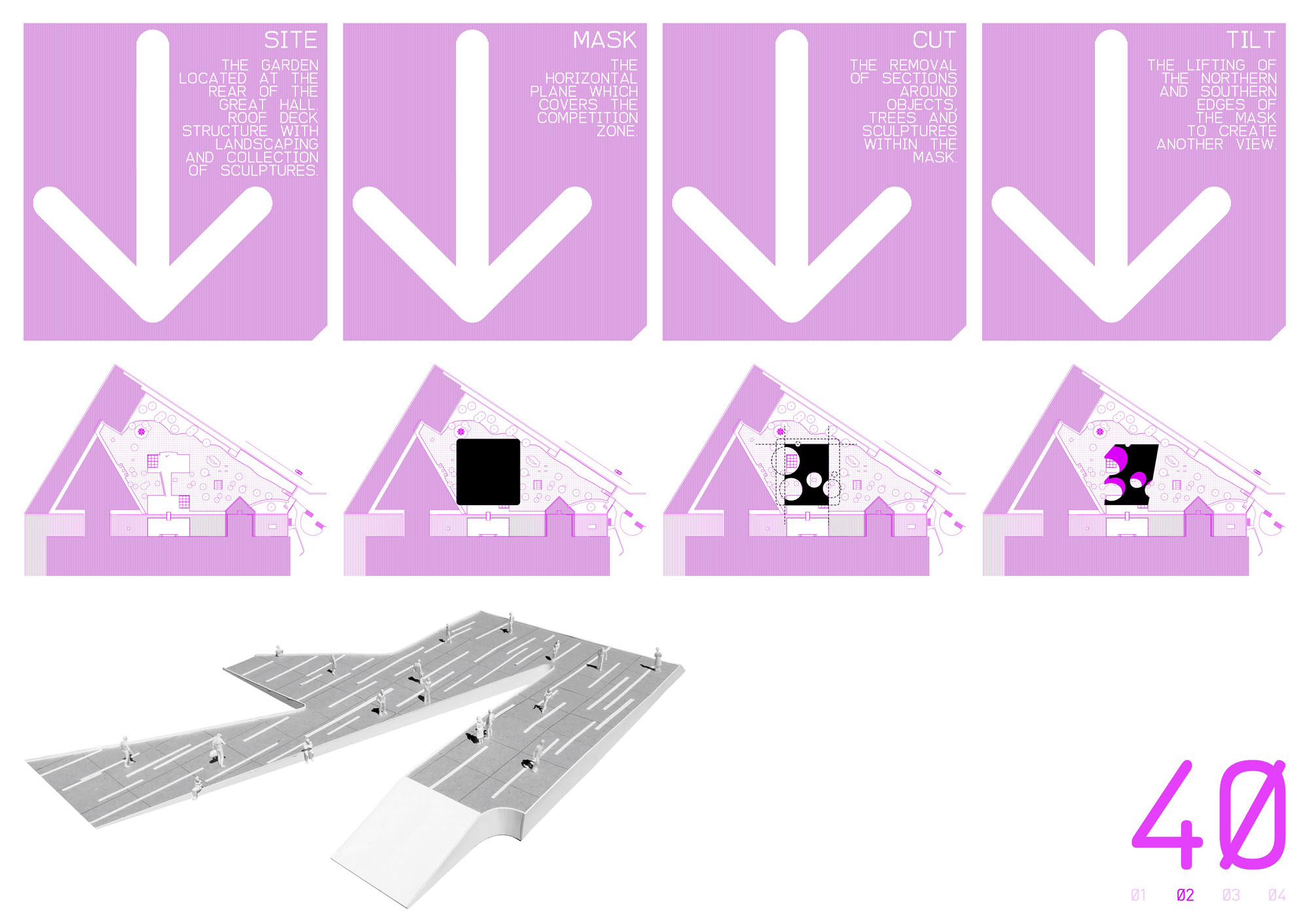The removal of sections the mask around objects, trees + sculptures within the mask’s boundaries.